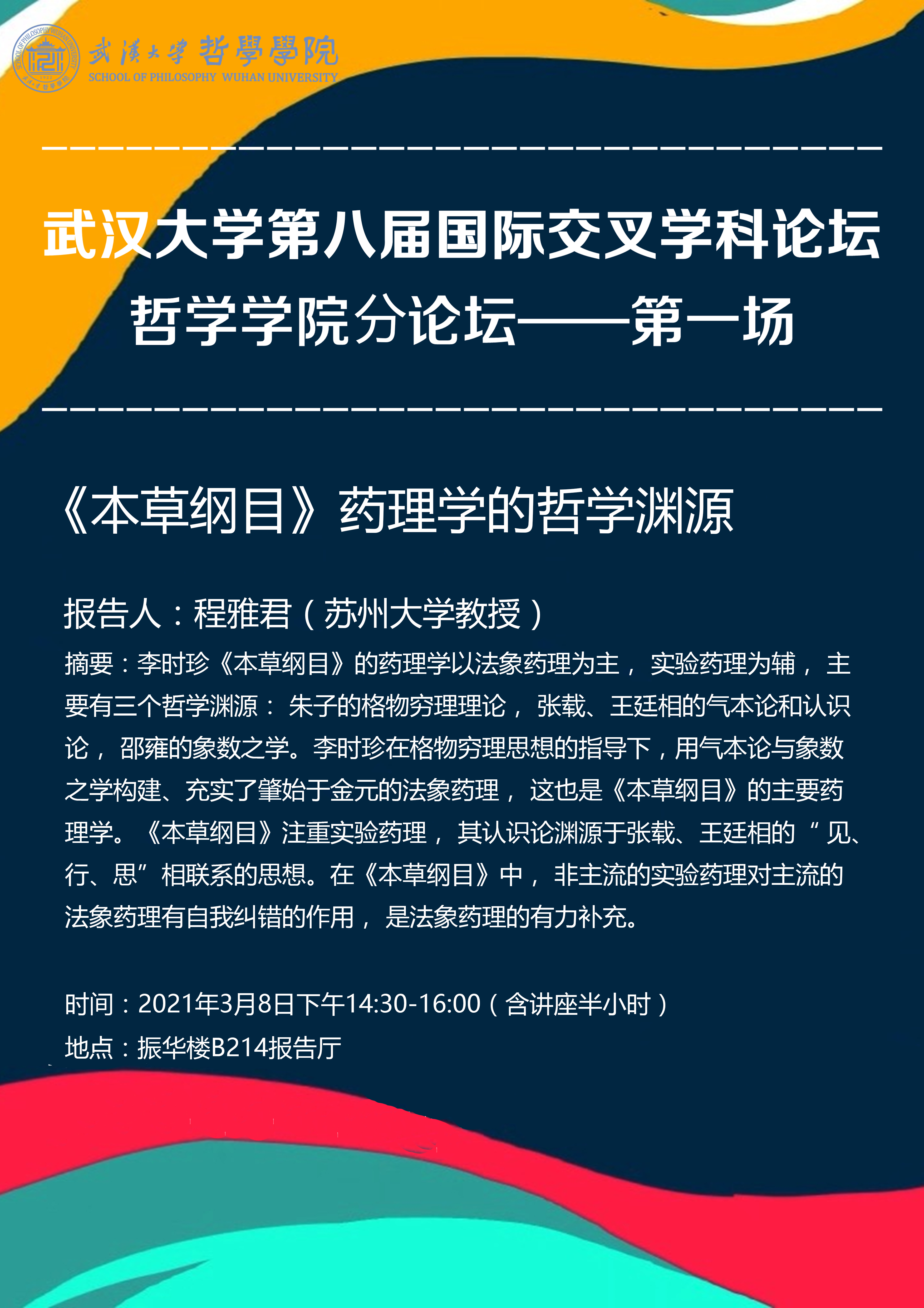 【3月8日】探花系列 第八届国际交叉学科论坛探花系列 分论坛——第一场:《本草纲目》药理学的哲学渊源