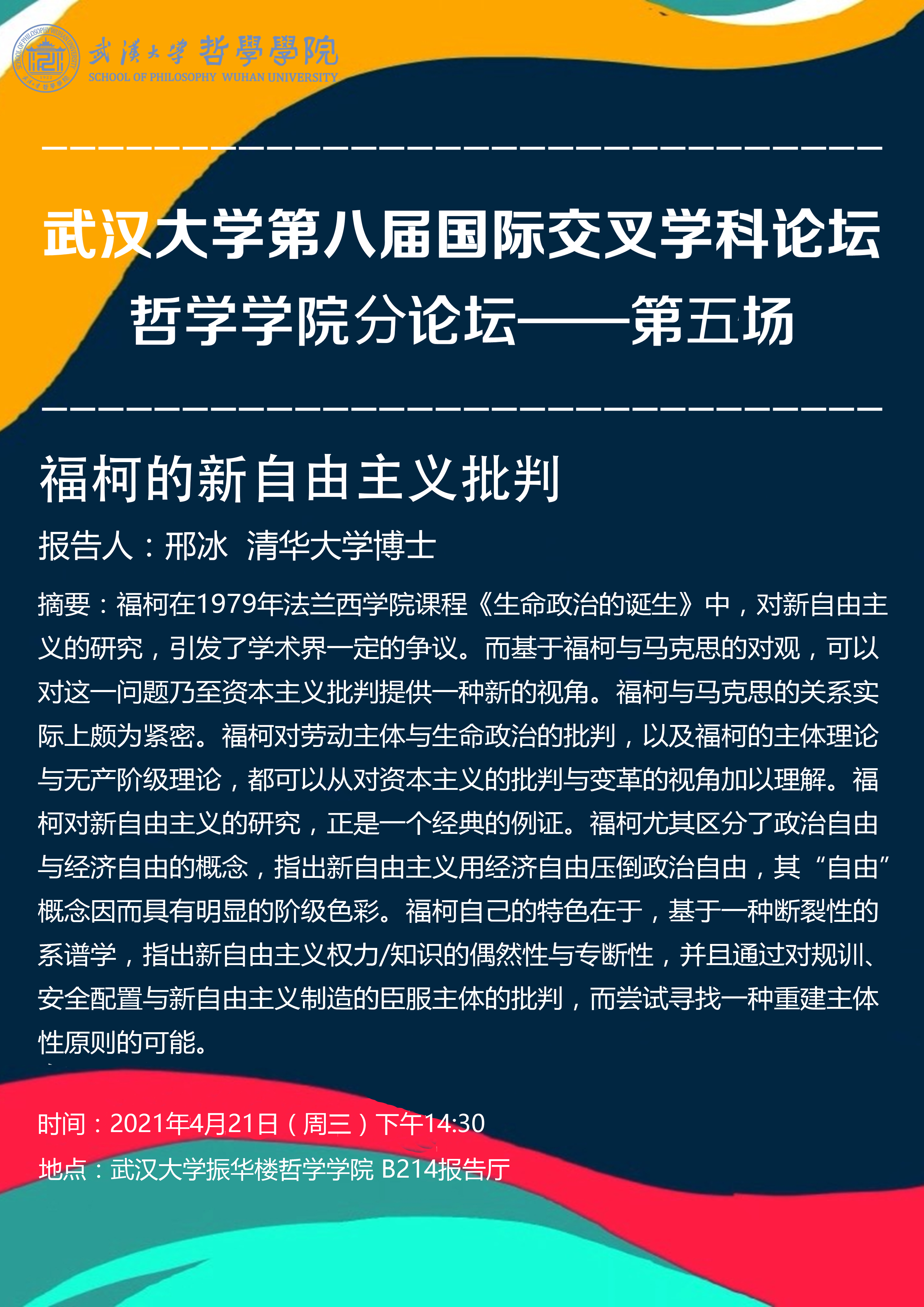 【4月21日】探花系列 第八届国际交叉学科论坛探花系列 分论坛——第五场