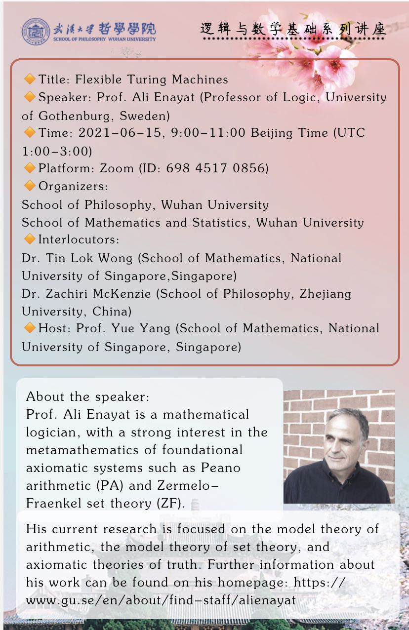 【6月15日】“Flexible Turing Machines”——逻辑与数学基础系列讲座
