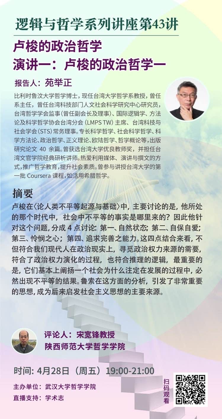 【4月28日】卢梭的政治哲学演讲一:卢梭的政治哲学一——逻辑与哲学系列讲座43讲