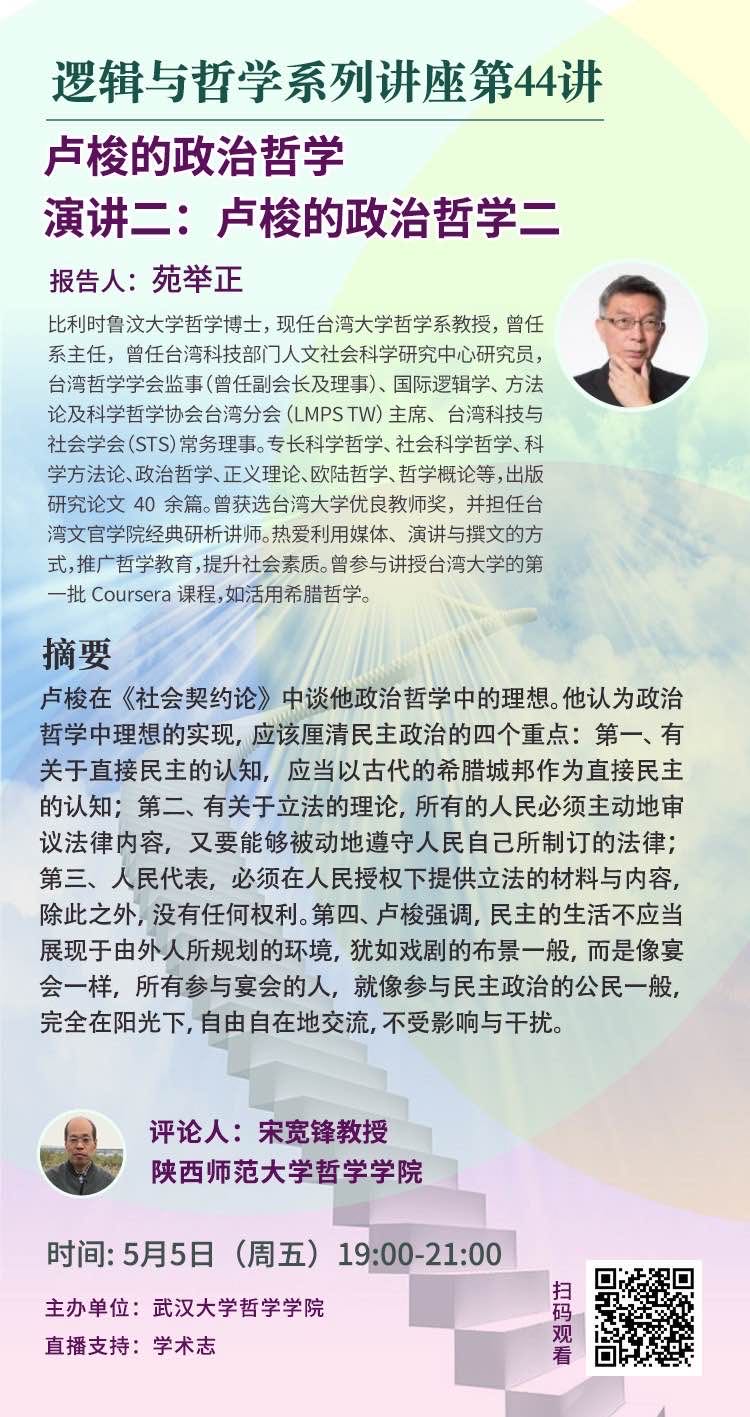 【5月5日】卢梭的政治哲学演讲二:卢梭的政治哲学二——逻辑与哲学系列讲座44讲