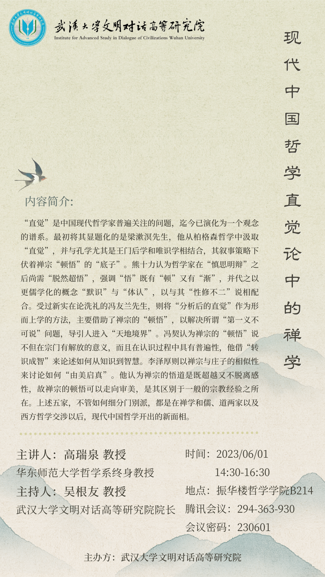 【6月1日】现代中国哲学直觉论中的禅学