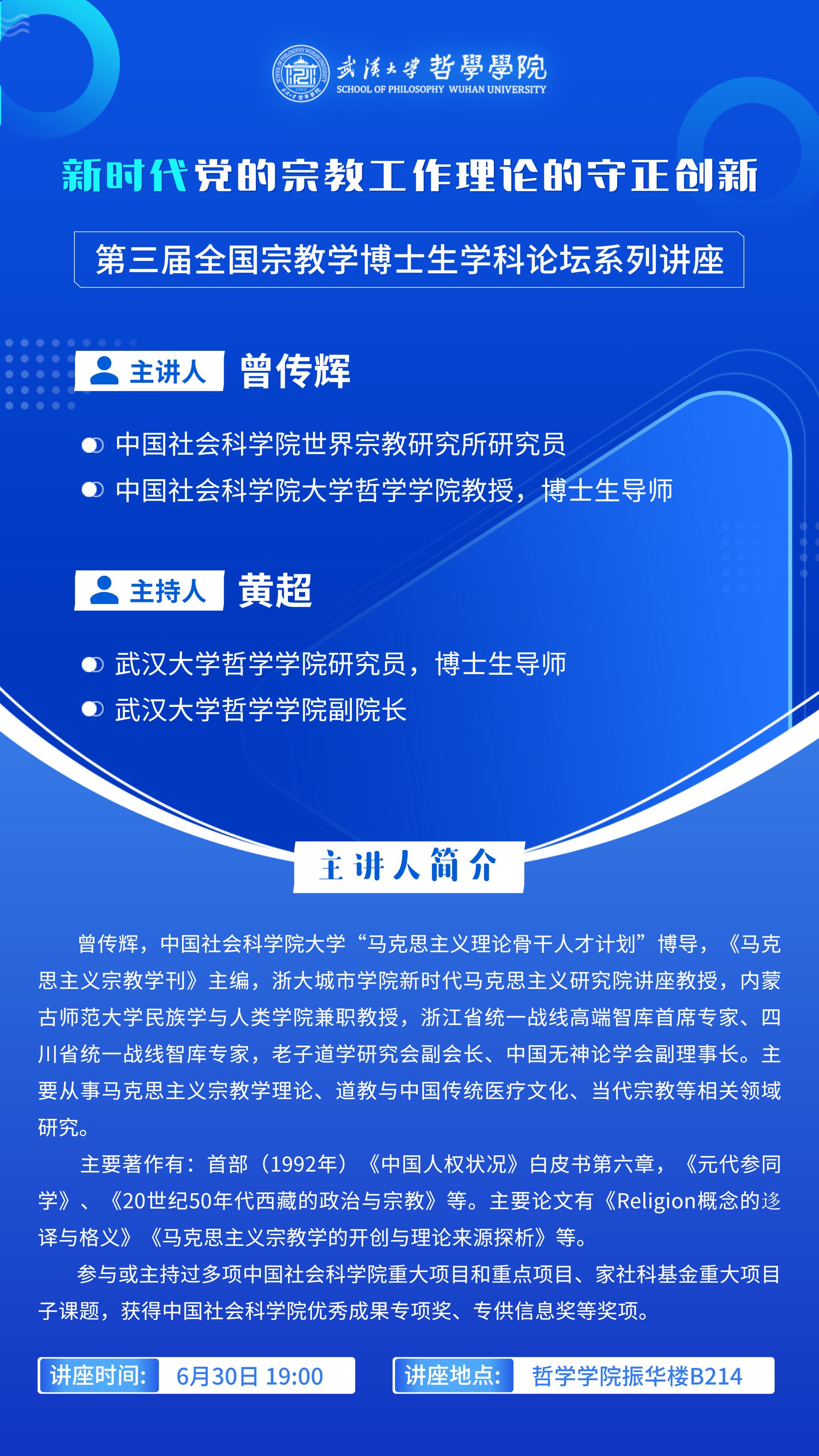 【6月30日】新时代党的宗教工作理论的守正创新——第三届全国宗教学博士生学科论坛系列讲座