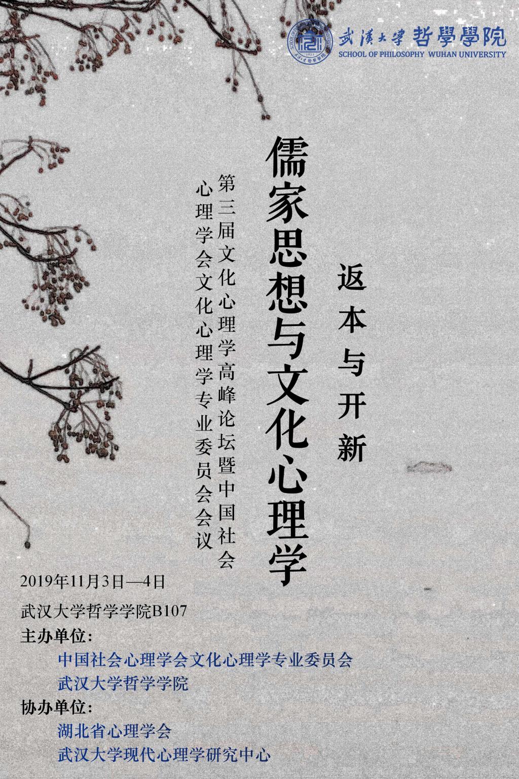 【11月3日—11月4日】 第三届文化心理学高峰论坛暨中国社会心理学会文化心理学专业委员会会议
