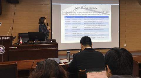 讲座开始,Angela Leung教授给以亚洲社会心理学期刊为例,建议各位师生在论文写作之前关注该期刊的投稿要求和注意事项,提高录用率。Angela Leung教授指出,期刊在收到作者投稿时有几点考虑:一、论文是否符合本刊的主题;二、论文是否值得进入审稿阶段;三、论文是否对以往的研究有突破和贡献;四、论文是否新颖、有价值和潜在影响力;五、论文的写作是否清晰;六、论文研究结论的可靠度。