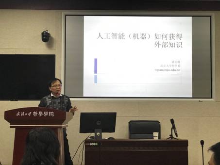 随后,潘天群教授作了题为“人工智能如何获得知识?”的报告。潘天群教授认为,虽然机器具有优越的计算、推理能力,但是由于机器没有感知与信念,无法满足知识所必要的“证成”以及对“真”概念的理解,因而目前只能以“拟人类”的存在方式来认知世界。只有通过“翻译函数”构建拟人的感知系统、与世界直接联系,才能让机器真正像人一样认知世界。湖北大学王振副教授在点评中对潘天群教授的理论进行了框架重构,认为其报告中没有提到一些现当代的科学实践。提问环节中,探花系列 潘磊副教授认为机器需要面对怀疑主义的挑战,陈刚教授和潘天群教授就机器学习的具体范畴进行了交流,湖南师范大学詹好同学认为人工智能获得知识不需要理解真概念。代海强研究员对“获得知识”的意义层次进行区分,认为人工智能无法对信息进行理解。潘天群教授对这些问题一一作出了回应。