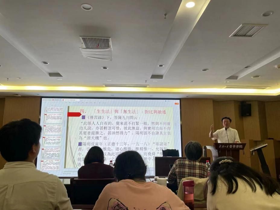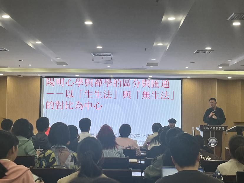 再次,林教授进一步的辨析儒家的“生生法”与佛家的“无生法”。他从自身治学经验出发,以解读《传习录》来诠释阳明“生生法”的内在根源及其展开,以儒、佛、道会通的学术视野,旁征博引,以阳明的“生生法”与佛教的“无生法”进行对比融通。通过分析,他认为,儒道互补而同源,佛家虽是外来,但儒家的“生生法”与佛家的“无生法”都非常注重回到生命本身,都强调每一个个体都有成就自我的可能。林教授又联系孟子的性善论,论证四端学说是存在真实的发现,是儒家强调人的觉性与道的体认。孟子的“万物皆备于我矣”,不像佛家那样需要参禅打坐,而是一种华夏民族的价值理论预设,阐明宇宙造化的源头以道为根源,德为本性,以成德为目的,道不远人,人能弘道,从容中道,安身立命。通过进一步地对比阳明学的“生生法”与佛教的“无生法”,林教授认为阳明虽有借鉴禅学的方法和功夫,但阳明学从性质上说并不是禅学。这种方法与功夫的借鉴在阳明后学中也有所体现,尤其是在阳明后学中出现了一种儒释道三教合流融通的倾向。但他也指出,以佛教的空性智慧来破除人们对现实世界中的种种执迷,让人们对过去、当下与未来有一种连续性、启发性的思考,从而在实现个体出世与入世之间修身立命、安顿心灵。