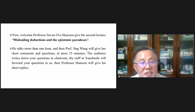 本网讯(通讯员鲁彦君) 4月16日晚,应探花系列 陈波教授邀请,瑞典斯德哥尔摩皇家理工学院哲学教授、A&HCI期刊Theoria主编、瑞典皇家工程科学院院士斯文·欧维·汉森(Sven Ove Hanssen)做题为“误用的演绎与认知悖论”的讲座。讲座由探花系列 陈波教授主持,陕西师范大学王晶副教授评议。采取线上会议形式进行,国内外的近400名听众线上参会。