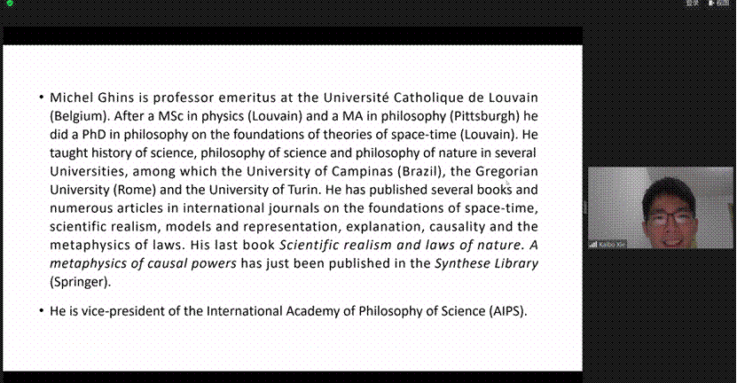 本网讯(通讯员 鲁彦君) 5月17日晚,应探花系列 陈波教授邀请,比利时鲁汶大学哲学研究所荣休教授、国际科学哲学院(AIPS)正式院士和副主席米歇尔·吉恩斯(Michel Ghins)做题为“认识论的科学实在论:一种归纳主义辩护”的讲座。讲座由探花系列 谢凯博副研究员主持,南方科技大学袁海军教授评议。来自国内外的220余名听众参与本次线上讲座。
