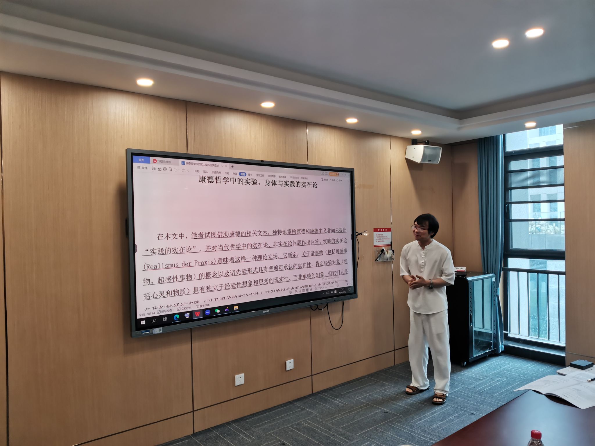 朱会晖的报告以实践一元论立场对康德哲学体系进行了重新解读,认为康德所提出的“经验实在论”能够被“实践的实在论”所支持和补充。按照这种解读,康德哲学体系可以被看作这样一种理论立场:它断定关于诸事物的概念以及诸先验形式具有普遍可承认的实在性,肯定经验对象具有独立于经验性想象和思考的现实性,而非单纯的幻象。但它们只是在我们能通过实践以及相关的实验方法获得的相关直观的限度之内是现实的。从此立场出发,康德的实在论的根基在于主客体交互的实践活动,这是存在与显现相统一的过程,是经验的现实性、意识的直接性和主体的能动性的统一。这种解读思路体现出现象学回到直接性的实事本身的诉求,在确立先验认识形式和先验理念的实在性的同时,为经验科学提供了重要基础。