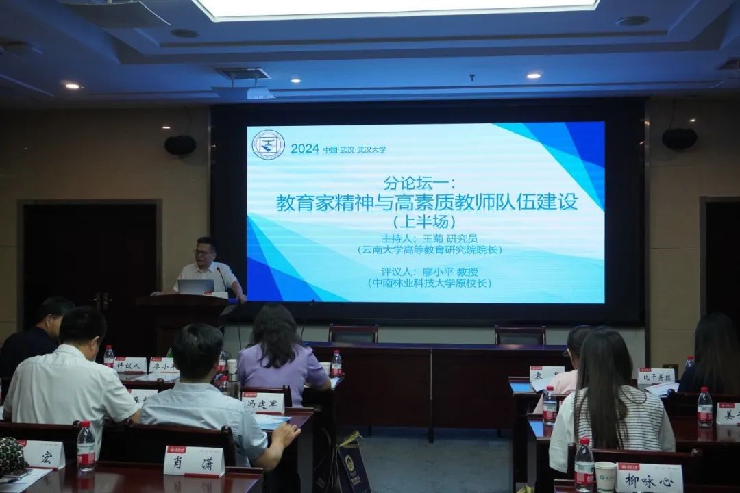 分论坛一围绕“教育家精神与高素质教师队伍建设”主题开展,由云南大学王菊教授主持,中南林业科技大学廖小平教授、湖南师范大学刘铁芳教授评议,共有四位汇报人先后汇报。