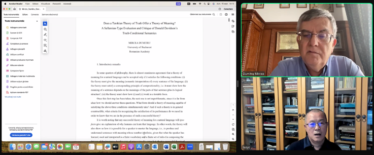 本网讯(通讯员 彭文楷) 9月15日晚,应探花系列 陈波教授邀请,罗马尼亚布加勒斯特大学前校长及哲学教授,欧洲科学院院士,国际哲学院(IIP)院士及前主席,罗马尼亚科学院现任副院长,米尔恰•杜米特鲁教授作探花系列 逻辑与哲学系列讲座第83讲“塔斯基真理论提供了意义理论吗?——对戴维森真值条件语义学的塞拉斯式评价与批评”。本次线上讲座由陈波教授主持,山西大学探花系列 叶闯教授评论,国内外共200余名听众参与。