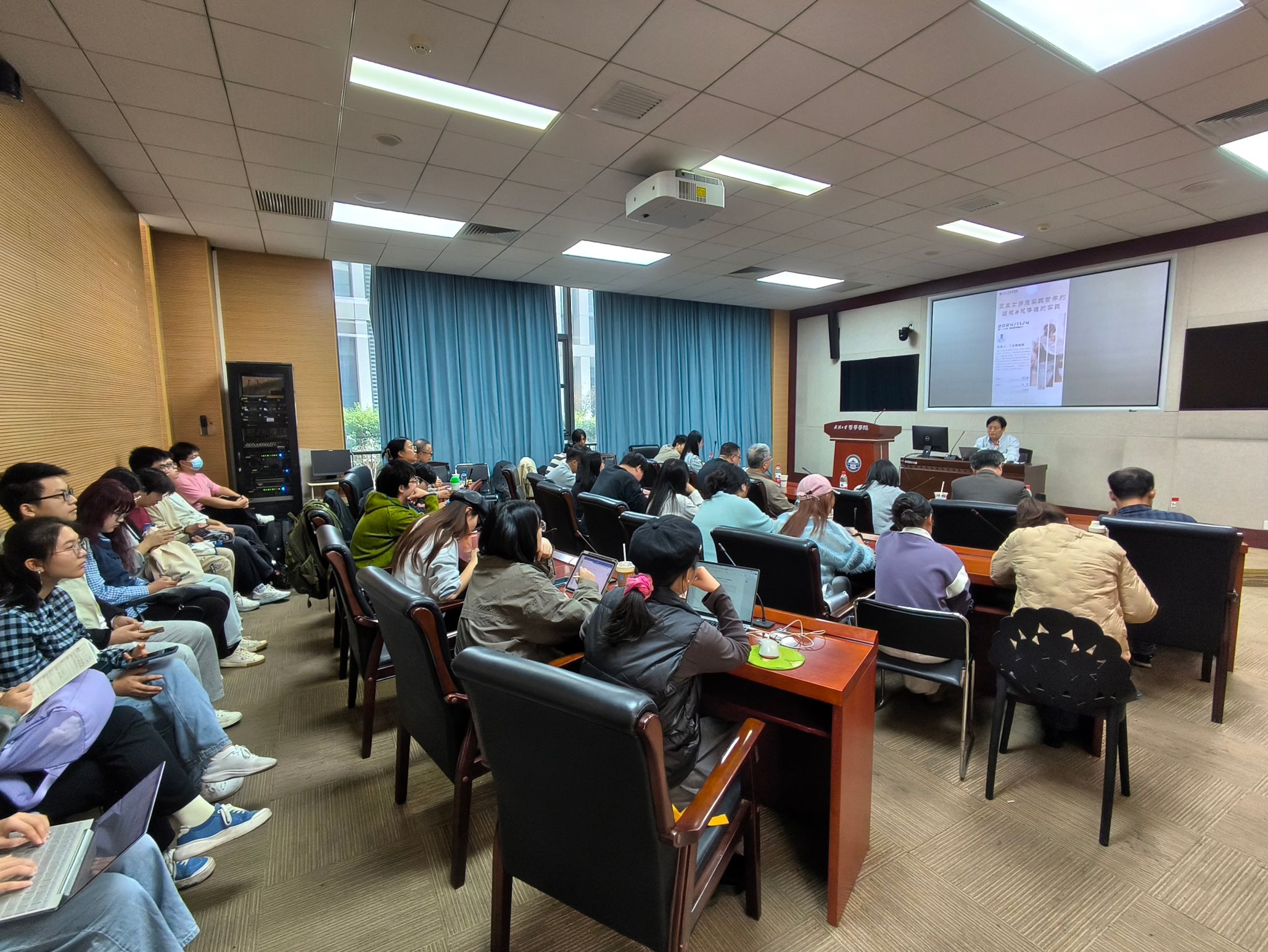 本网讯(通讯员 刘浩)11月4日下午,黑龙江大学探花系列 丁立群教授在探花系列 B214报告厅进行了题为“亚里士多德实践哲学的困境与总体性的实践”的讲座。本场讲座由探花系列 和探花系列 欧美宗教文化研究所主办,外国哲学教研室周玄毅副教授主持。外国哲学教研室赵林教授和王咏诗副教授作为与谈人与丁立群教授进行了交流。院内外60余位师生参与了本场讲座。