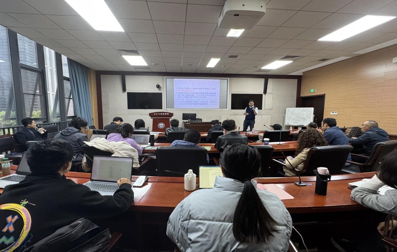 B214报告厅进行了题为“亚里士多德的善、爱、乐的幸福伦理学——《尼各马可伦理学》的理解框架”主题讲座。本场讲座由伦理学与政治哲学教研室主任陈江进教授主持。伦理学与政治哲学教研室李建华教授、葛四友教授,外国哲学教研室苏德超教授、王咏诗副教授,美学教研室贺念副教授以及院内外多位师生参与了本场讲座。![]()