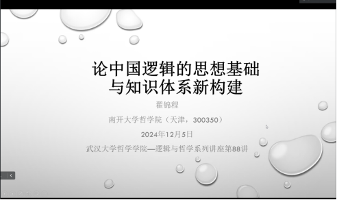南开大学翟锦程教授主讲“中国逻辑的思想基础与知识体系新构建”
