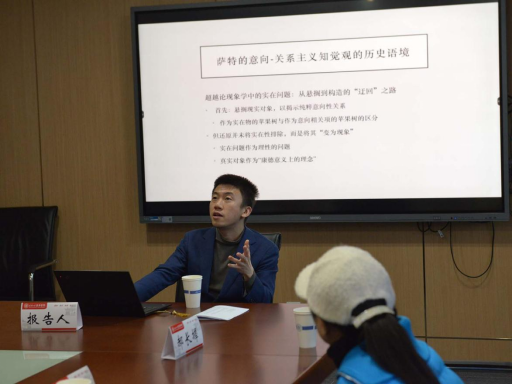 华东师范大学黄笛副教授以“意识作为无化——萨特的关系–意向主义的存在论基础”为题进行主题报告,指出了萨特知觉哲学中“实在与无化的纠缠”。他认为,在柏格森素朴实在论和胡塞尔的意向论的历史语境中,萨特一方面批判柏格森忽视了“对象结构”,希望通过意向性阐释这一结构,另一方面又不满于胡塞尔对现实对象的悬搁,希望保留与作为“理念”的对象的直接接触,试图将知觉接触解释为既是“无距离的在场”,又是“分离”。为了统合这一充满张力的双方,萨特需要将感知关系阐释为“被否定的同一性”,这一具有内在否定与纯粹否定性质的“否定”作为存在论基础最终使得意识与世界的“无距离”接近与保证不“融为一体”的“分离”同时得以可能。