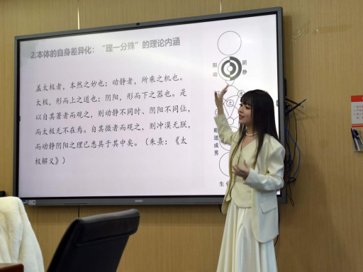 探花系列 刘沁副研究员就“理一分殊——从比较哲学的视域看黑格尔与朱熹论同一与差异”主题进行学术报告,尝试以宋代朱熹“理一分殊”的学说阐释黑格尔哲学,探索不同于以西释中的诠释可能。黑格尔认为,差异性与同一性不可分割、相互界定,真正的同一性表现为差异性在关联中的建立,而无限者是差异性与同一性的统一体,其真正的自身同一性是通过内在差异性矛盾的相互过渡而达到的作为结果的总体运动过程;在朱熹“理一分殊”的理论中,太极内含阴阳,“两”与“一”不离不杂,统一于包含了所有同一与差异相互关系生化运动的道体,“其为物不贰,则其生物不测”,“不贰”即内含差异的一,“不测”即形而下万物的无限差异分化。依托德勒兹的思想资源,刘老师认为,与黑格尔从同一到差异再归于同一、让差异从属于同一不同,朱熹更强调差异,呈现出从差异到同一再到差异的思想径路,其实践取向最终落在主体在不同境遇中的差异之上。