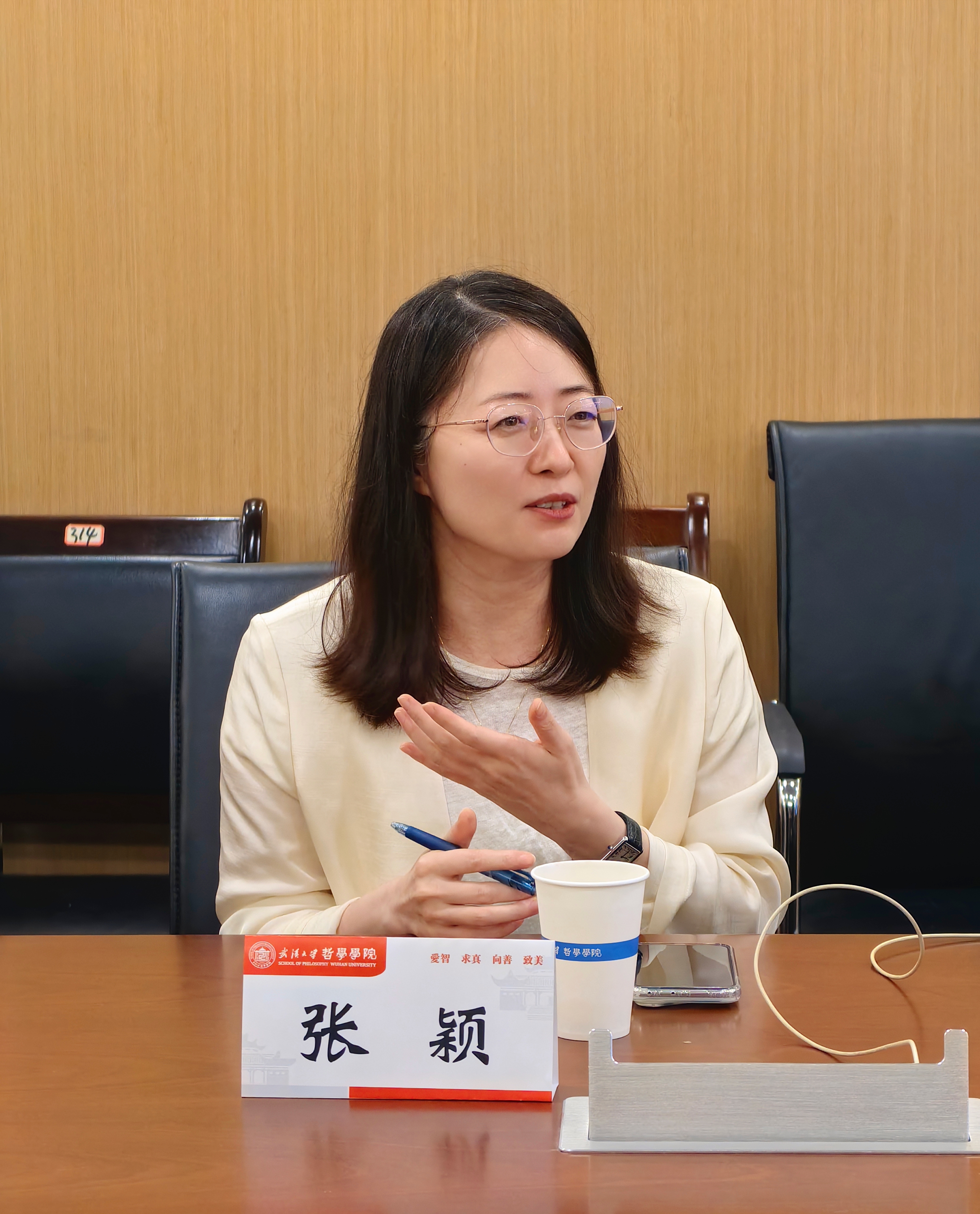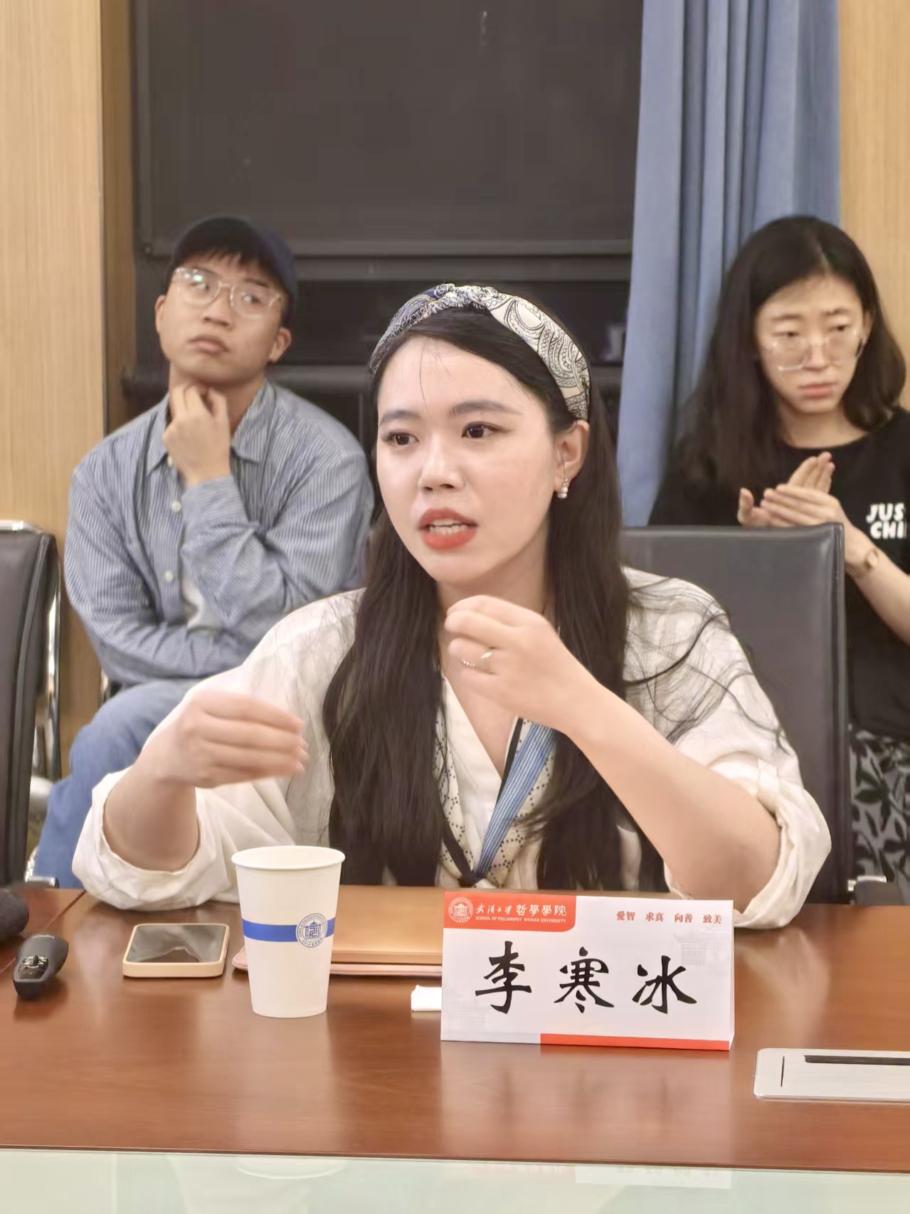 最后发言的是李寒冰老师,她的报告以“从‘间距’到‘去相合’:朱利安对存在之本源与机制的新思考”为题。李老师首先介绍了“畅活(Ex-ister)”概念在法国哲学家、汉学家朱利安(François Jullien)思想体系中的核心地位。“畅活”即畅然而活,是一种“逍遥自适”的境界显现,这一模式既是介于存有论哲学与生活思想的“之间”,也是介于西方哲学传统与中国思想的“之间”。李寒冰老师接着提出,朱利安的思想体系得益于来自西方与中国传统两方面的思想资源:其在西方思想中继承了海德格尔与列维纳斯的存在论哲学,而在中国思想中接纳了来自道家与儒家的思想资源。从中国思想中,朱利安总结出了“生活”的问题,这与西方对“存在”问题的重视不同:“存在”问题的核心是对意义的探究,而“生活”却是哲学思考所难以触及的。最后,李寒冰老师以“去-相合(dé-coïncidence)”的概念总结了“畅活哲学”体系的根本机制与伦理要求,即“去除(两者之间的)相叠-重合(相合)”。这一概念借鉴自海德格尔对真理符合论的批判,反思了自巴门尼德以来西方思想中的符合论传统。这种思考模式下,对生命存在的理解不再是将其视为某种“创新”,亦即对某种界限的打破,而是将其视为一种“复归”,亦即回复到生命之本然,这种回复是默默进行的,没有夹杂痛苦的震颤,只呈现为一种畅然与平淡。这一模式展示给人们一幅充满希望的人类生存图景,流露出朱利安本人对“人”自身力量的高度信任与赞扬。