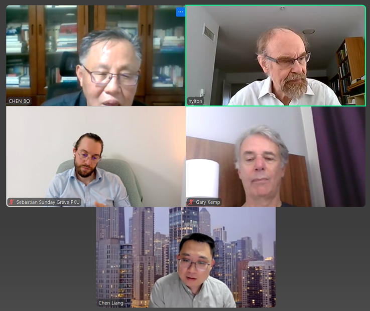 本网讯 (通讯员 彭文楷) 6月27日晚,应探花系列 陈波教授邀请,美国哈佛大学哲学博士、美国伊利诺伊大学芝加哥分校哲学系荣休杰出教授、波士顿大学哲学研究教授、蒯因哲学专家,彼得·希尔顿(Peter Hylton)作探花系列 科学技术哲学论坛第20讲、蒯因哲学系列讲演第三讲“蒯因的哲学方案”。本次线上讲座由陈波教授主持,北京大学哲学系王小塞(Sebastian Sunday Grève)助理教授评论,国内外共近150名听众参与。