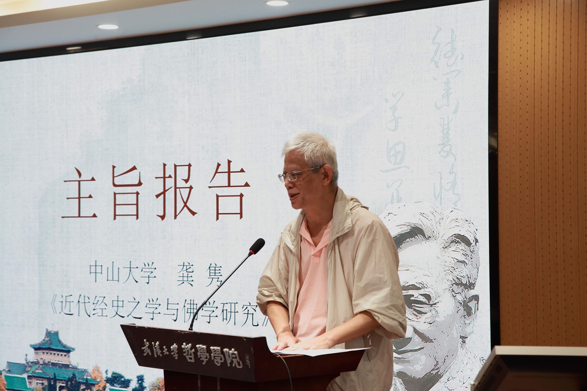 中山大学龚隽教授的报告以“近代经史之学与佛学研究”为主题。他梳理了新史学的佛学研究、哲学性的佛学研究与经史之学的佛学研究三种近代中国佛学研究类型,并讨论了近代佛学研究中的自身传统与域外经验的问题。龚教授认为,近代中国佛学与经史之学的探究,并没有从理论和学术实践层面根本解决知识与价值融合的问题,但他们的探索经验对我们当前的佛学研究来说,具有一定的参考性。