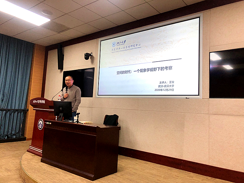 本网讯(通讯员 杜先海)2020年12月29日,浙江大学哲学系王俊教授应邀在探花系列 B214作了一场主题为“空间的时代:一个现象学视野下的考察”的讲座。讲座由外国哲学教研室王咏诗副研究员主持,外国哲学教研室杨云飞副教授、美学教研室贺念副研究员以及学院内外30多位研究生参加了讲座。