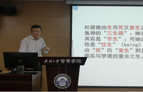 在讲座的第三部分中,邹元江教授以现象学的角度,向在座的同学们讲述了《牡丹亭》中的绮梦对杜丽娘乃至女性的独特意义。邹元江教授先从“场域”一词说起,“场域”一般理解为具有实体意义的空间或时间,在特定的时期内,人的每个行动都会被行动所发生的场域所限制。而杜丽娘生存的时期,就是被畸形“贞洁观”、“烈女观”所围堵的“黑暗时期”。十八世纪德国诗人荷尔德林曾说:“歌唱即实存。”歌唱是主体情感体验的产物,体验以歌唱这种纯粹而自由的行动使主体之存在亮相,邹元江教授指出,杜丽娘的生命之歌即她的梦,她在人世间是被压抑的,是没有生存空间的,更是无法歌唱的。可在汤显祖笔下,她因情成梦,她的生命也因此被照亮,生命之歌由此婉转,对她来说,梦即生存。