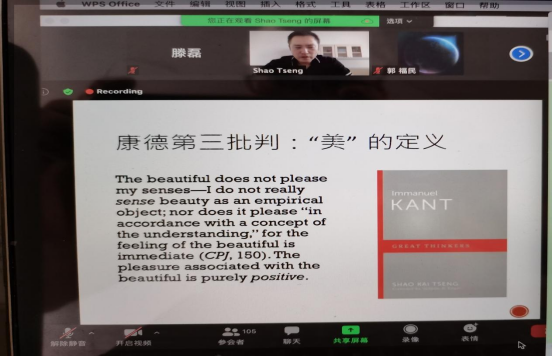 本网讯:(通讯员 滕磊)2021年6月25日下午,浙江大学哲学系研究员、美国哥伦比亚国际大学客座博士生导师曾劭恺博士,应邀举行了题为“德意志观念论和浪漫主义”的讲座。此次讲座由李宜老师主持,来自不同院校的100多名同学参加了此次线上讲座。