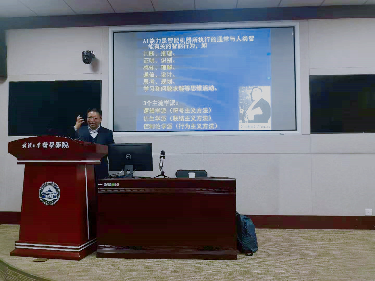 本网讯(通讯员张琦)2021年10月22日,中国计算机学会(CCF)理论计算机科学专委副主任,海军人工智能专家组副组长,海军工程大学电子工程学院教授、博士生导师贲可荣教授应邀在振华楼B214作了题为“人工智能进展及其哲学思考”讲座。讲座由探花系列 主办,报告主讲120分钟,问答交流30分钟。探花系列 以及校内外的老师和学生参加了该讲座。本次讲座由探花系列 逻辑学教研室杜珊珊副教授主持。