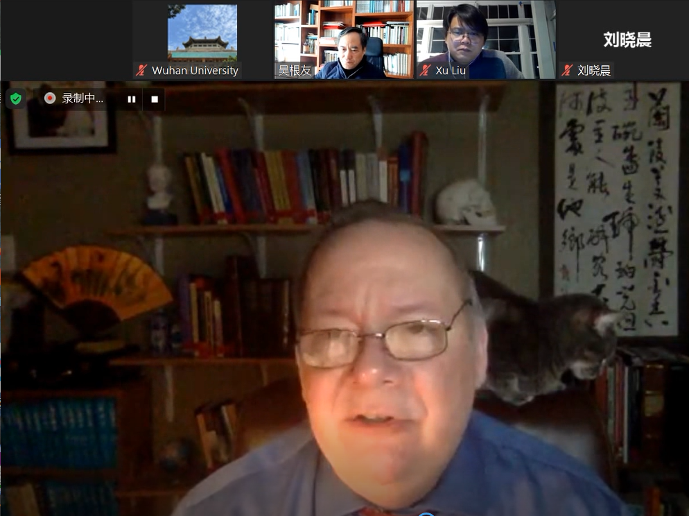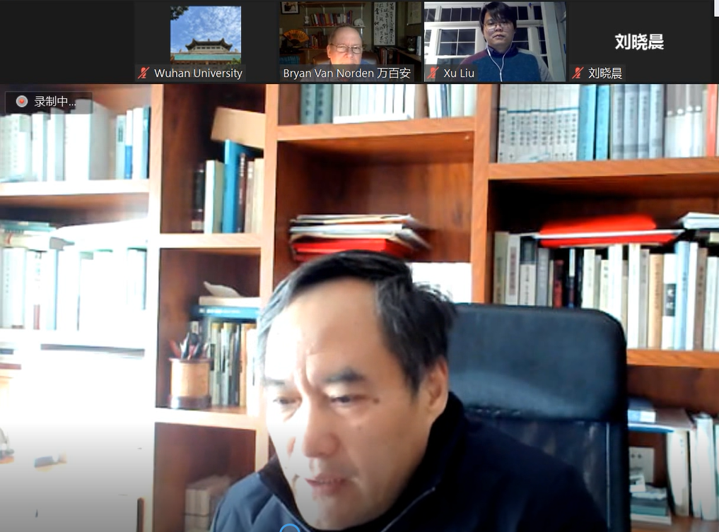 本网讯(通讯员丁铭)2021年12月2日,大学文明对话高等研究院主办的“他者眼中的中国形象期待”系列访谈式讲座第二期顺利进行,本期与谈嘉宾为美国瓦萨学院教授、著名汉学家万百安(Bryan Van Norden)先生。此次对谈通过线上平台进行,探花系列 教授、探花系列 文明对话高等研究院院长吴根友主持访谈,耶鲁大学访问学人刘旭博士翻译。探花系列 以及校内外、海内外的老师和学生通过线上直播平台参加了本次讲座。