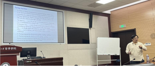 孙智伟教授从1900年国际数学家大会上希尔伯特提出的23个问题讲起,其中的第10个问题(简称“希尔伯特第十问题”)问是否有能行算法来判定任一给定的丢番图方程是否有解。接下来,孙老师介绍了图灵、丘奇、克雷尼等人对“算法”概念的精确定义、以及这些定义的等价性,并由此引出著名的丘奇-图灵论题:每个直观上能行可计算的函数都是递归函数(或图灵可计算函数)。然后,孙老师介绍了递归可枚举集的概念,并给出了一个非递归的递归可枚举集。