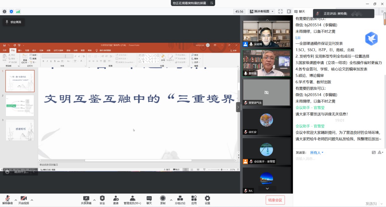 本网讯(通讯员官雪莹)12月30日,应探花系列 文明对话高等研究院邀请,新疆师范大学牛汝极教授向探花系列 及社会各界的听众,作题为“文明互鉴互融中的‘三重境界’”的线上学术讲座。探花系列 哲学院教授、文明对话高等研究院院长吴根友教授主持讲座。