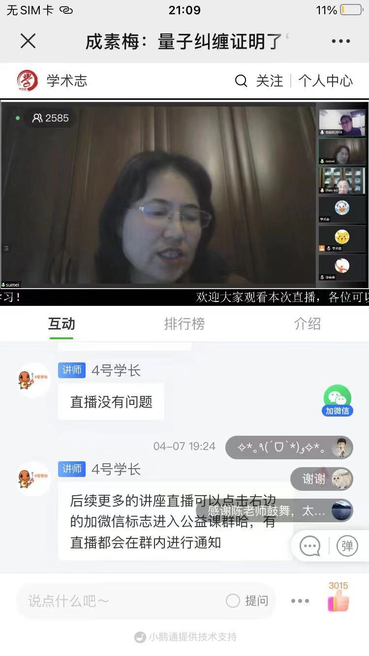 上海社会科学院哲学所成素梅教授讲座“量子纠缠支持意识决定论吗?”成功举办