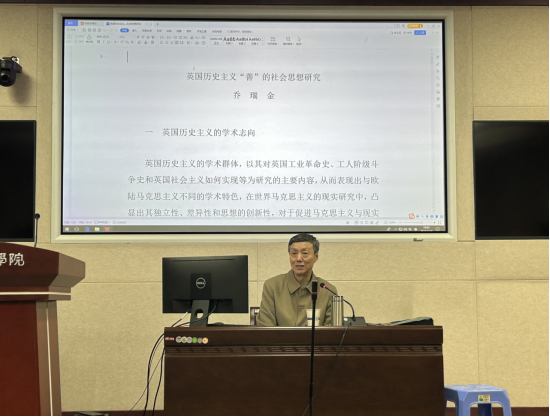 本网讯(通讯员 滕锦秋)3月19日19:00,山西大学马克思主义哲学研究所所长乔瑞金教授在振华楼B214报告厅为探花系列 师生带来了一场题为“英国历史主义‘善’的社会思想研究”的精彩报告。报告由探花系列 马克思主义哲学教研室主任赵士发教授主持。