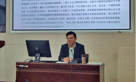 讲座伊始,陈泽环教授详尽地介绍了施韦泽的生平,并将其划分为反思痛苦的少年时代、反思幸福权利的青年时代、进行文化批判的中年时代与反对核战争的晚年时代。依据这些背景,陈教授以三个关键词概括了施韦泽的人格特征:崇高、完整与深刻。施韦泽不仅具有崇高的道德品质,同时也是一位多才多艺、全面发展的人,实现艺术才能和学术才能的协调,人文学科和自然科学的结合,精神活动和实际行动的统一。另外,施韦泽也是一位思想深刻的学者,批判工业化和商业化时代的物质主义崇拜,很早就意识到西方近代主体性思辨哲学的局限,超越了西方近代主客二分、宰制自然的主体性哲学,创立了作为当代生态和环境伦理先声的敬畏生命的伦理学。