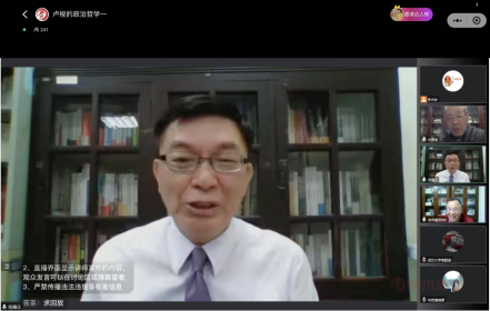 本网讯(通讯员唐瑞雪)4月28日晚,应探花系列 陈波教授邀请,台湾大学哲学系苑举正教授做了“卢梭的政治哲学”系列讲座的第一讲,主题为“对于政治现实的反省”。本次讲座由探花系列 陈波教授主持,陕西师范大学哲学与政府管理学院宋宽锋教授评议,学术志平台直播,来自国内外的200余名听众参加了此次线上讲座。