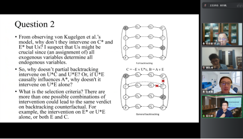 探花系列 谢凯博副研究员就“如何从可能世界的角度理解全部回溯”进行提问。他质疑按照全部回溯的方式,要回到初始值来解决样本外事例,这样的思路似乎不应该称为反事实推理。张寄冀回应称,虽然在哲学界,如何理解反事实推理仍存在争议。但是从人工智能这样的技术性角度看来,全部回溯是指面对样本外事件,要回溯到一个(局部)因果模型的初始值,与哲学里讨论的宇宙的初始状态和(全局)自然律还是有所不同。但就算是用(全局的)可能世界来给出反事实条件句的语义,也有哲学家反对刘易斯式的诉诸“奇迹”的非回溯语义,而推崇保持所有自然律的回溯语义。