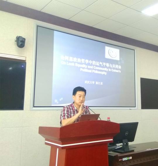 沙龙共分两场举行。第一场由探花系列 李志教授和陈江进副教授发言。李志以“连接经济与政治的‘阶级’——纪念《共产党宣言》发表170周年”为题,从恩格斯、伍德、胡萨米、熊彼特、伊格尔顿对阶级的不同解释出发,阐述了马克思对阶级的定位,指出阶级是连接经济与政治的中介性范畴。陈江进以“论柯亨政治哲学中的运气平等与共同体”为题,围绕运气平等主义与共同体原则是否兼容进行发言。他认为,共同体的功能在于保证基本需要和消除不平等,共同体的关怀并不是独立于运气平等主义的原则,而是完全可以从平等主义中逻辑推导出来。他指出,以共同体原则来修正运气平等主义不失为是一种出路。