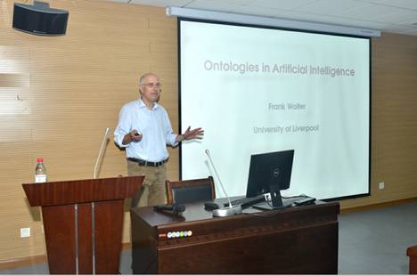 9月13日,沃尔特教授做了题目为“人工智能中的本体(Ontologies in Artificial Intelligence)”的讲座。在讲座中,沃尔特教授首先介绍了本体的概念,强调了本体的形式性和明确性。他讲到了应用本体构建语义网能够实现诸多功能,比如指派机器完成复杂任务、在数据仓库中确定信息位置以及进行考虑背景知识的复杂查询等。他指出,本体可以划分为域本体(domain ontology)和上层本体(upper ontology)两类。域本体提供了某一域的词汇表以及表上词项的意义;上层本体则涵盖了横贯在不同域之间的一般概念和关系,能够支持广泛的域本体之间的互操作性。他提到,从逻辑的观点看,一个本体就是一阶逻辑中的一个有限公理集。随后,沃尔特教授谈到了逻辑在本体工程中的应用,以及一个相对于特定本体和符号集的统一内插能够总结这个本体关于符号集的论断、在应用本体时减少词项的数目、隐藏不使用特定符号的谓词等。最后,教授总结到本体是人工智能和计算机科学中语义交流的重要工具。整场讲座气氛活跃,同学们积极提问,教授耐心解答,点评人分析精到。
