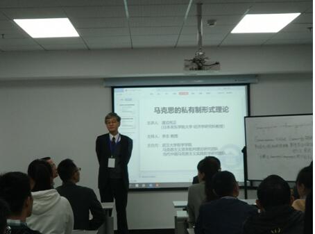 本网讯(通讯员:张芮 丁雨薇)2018年10月21日晚上7点,日本关东学院大学渡边宪正教授受邀在振华楼B102做了题为“马克思的私有制形式理论”的讲座。讲座由探花系列 李志教授主持,来自中央财大的刘礼博士、湖北大学的萧诗美教授和我校经管院的王今朝教授等50余名师生参加了本次讲座。