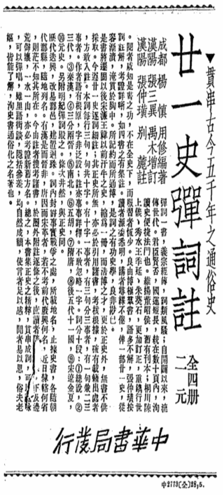 随着西方文学理念的东渐,弹词日益深入文学研究者的视野。1918年出版的谢无量编著的《中国大文学史》几乎包含了一切文体,小说、戏曲有专章论述,提到弹词“亦颇行于明代”却未具体介绍明清时流传的弹词作品。但无巧不成书,初版《中国大文学史》的尾页恰是中华书局发行四册本《二十一史弹词》的广告,宣传语称“贯串古今五千年之通俗史……史书通俗化之名著”(见图1)。