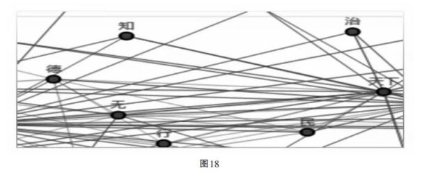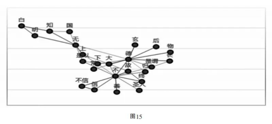 但对展示性的弱化却是道家论“德”与周人权力观念的差异所在。如《老子》所见,一个非常显著的特征是修辞层面,不再谈论明亮的“德”,而是推崇幽暗的“德”,即所谓“玄德”(第10章、51章、65章)。AI在建构动态概念网络时,也特别标出了“德”与“玄”的密切关联,并将之呈现在所有动态网络存在交集的重叠网络中(图15)。