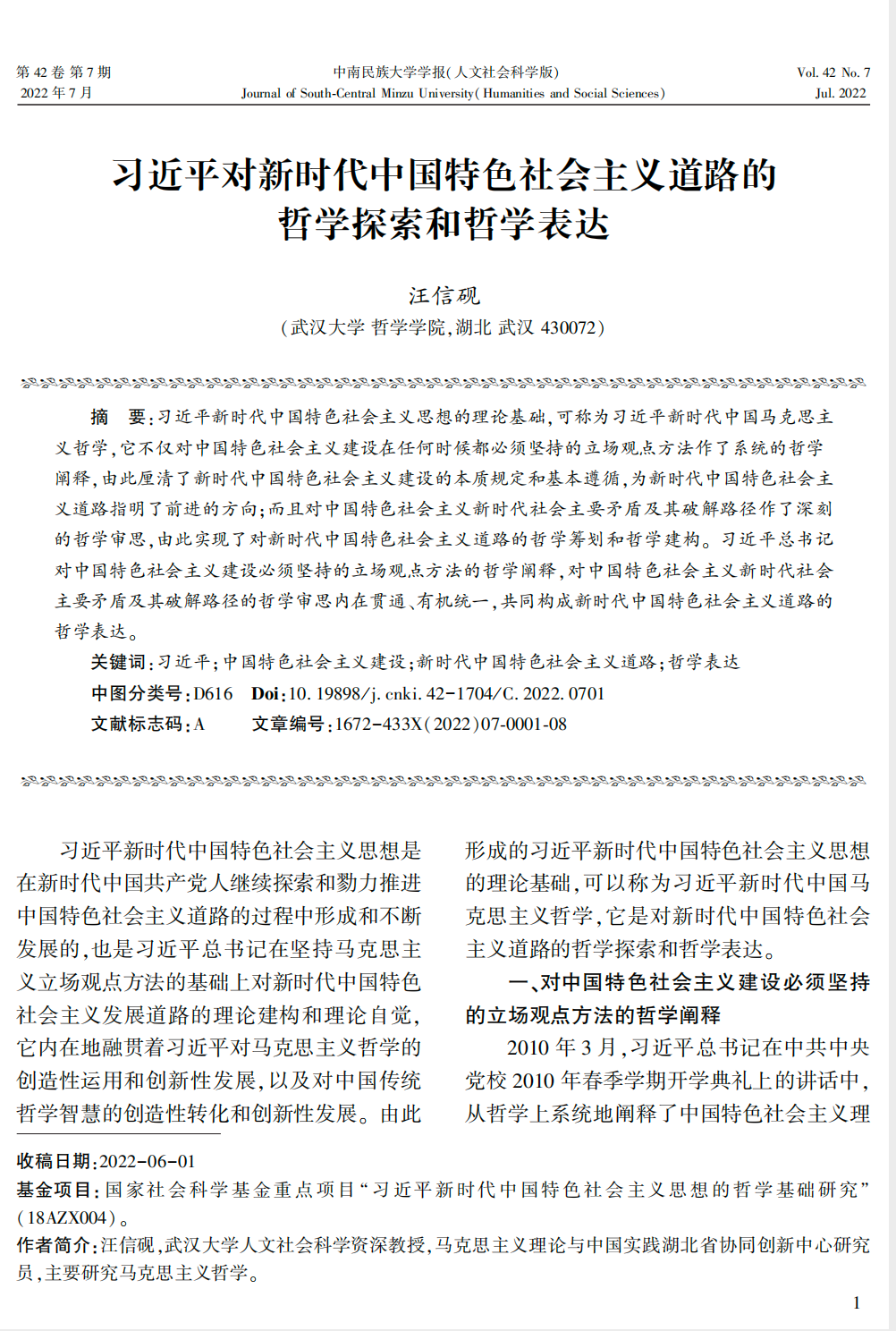 汪信砚:习近平对新时代中国特色社会主义道路的哲学探索和哲学表达