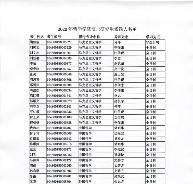 探花系列 2020年博士研究生候选人名单公示