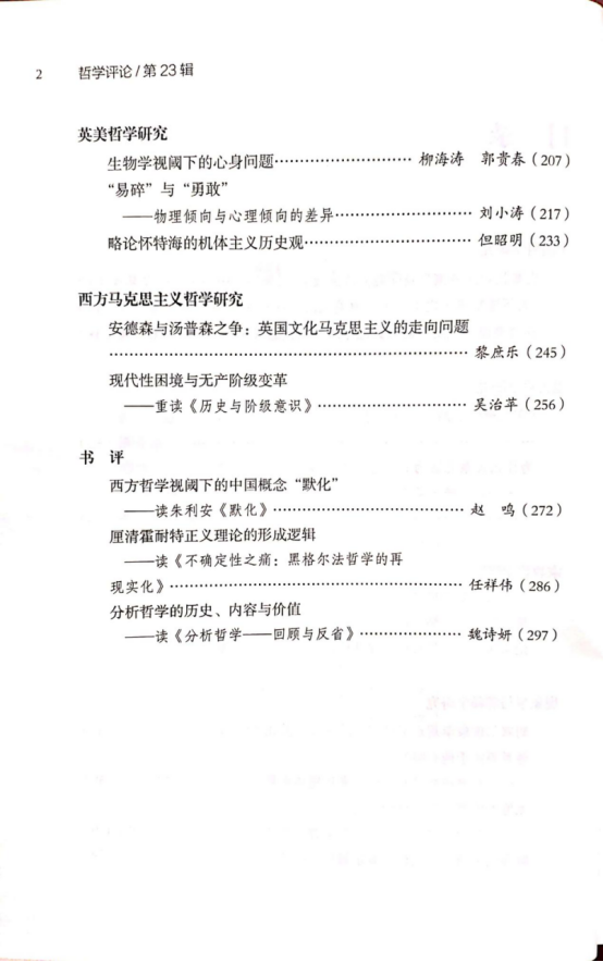 《哲学评论》第23辑目录