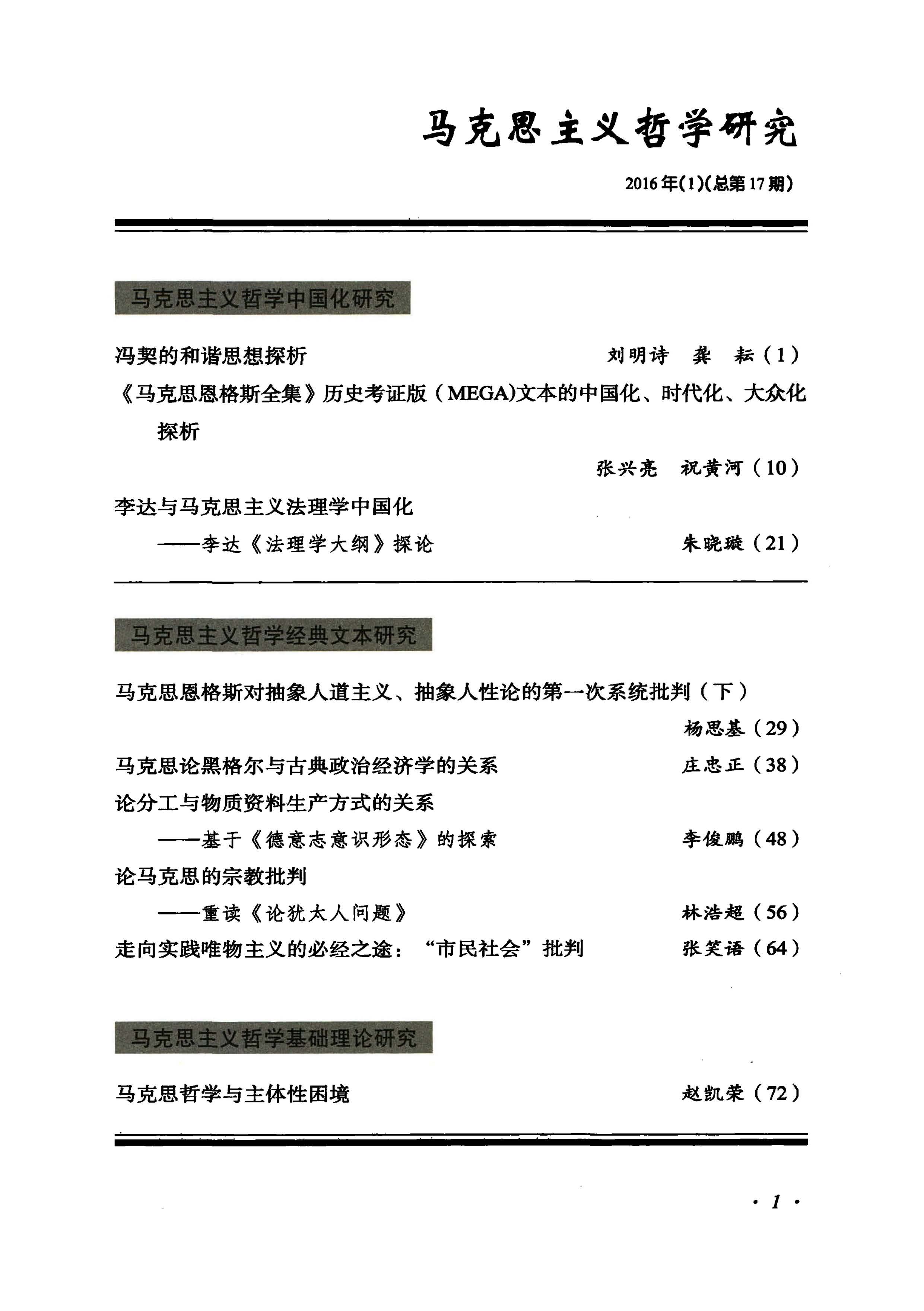 《马克思主义哲学研究》(2016年第1期)