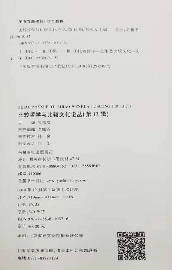 《比较哲学与比较文化论丛》 第13辑目录