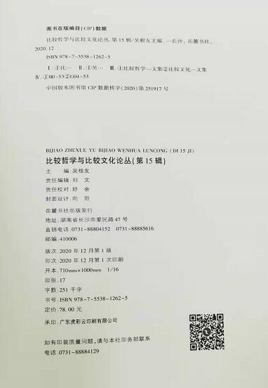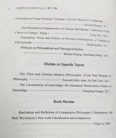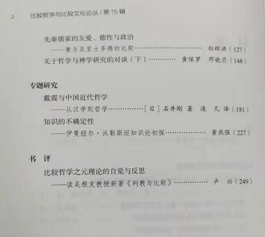 《比较哲学与比较文化论丛》 第15辑目录