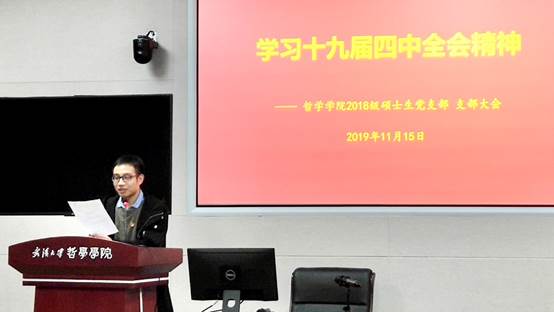 2019年11月16日是马克思主义哲学硕士生党员黄雕的政治生日,在宣布接收新党员的支部决议之后,支部大会邀请黄雕同志为两位新党员送出寄语。