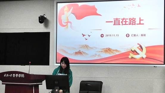 应用心理学硕士生陈双在汇报中指出,自己对党的认识经历了“家人说他好”、“老师说他好”、“自己觉得他好”的过程,而推动自己认识发展的便是坚定向党组织靠拢的决心和积极主动的学习。马克思主义哲学硕士生秦瑞在汇报中分享了李白烈士的光荣事迹,她认为革命先烈们为了党和人民的利益光荣牺牲的事迹可以不断提醒我们不忘初心、牢记使命。