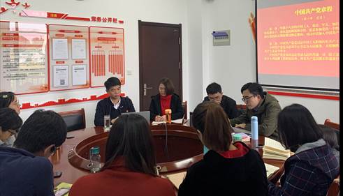 首先,全体党员重温入党誓词,宣传委员詹思群同志领誓。